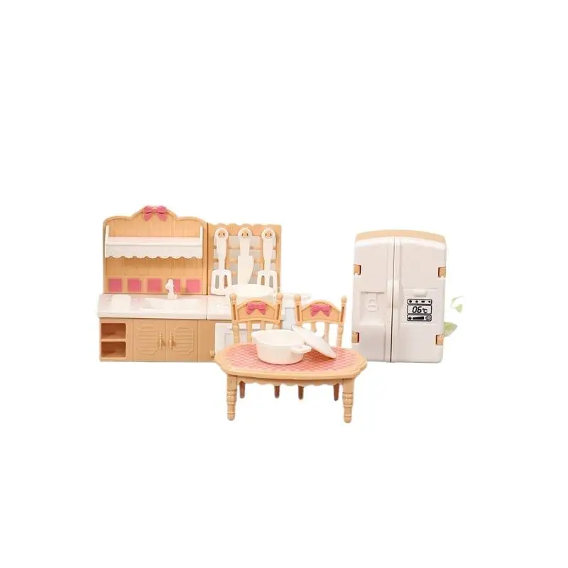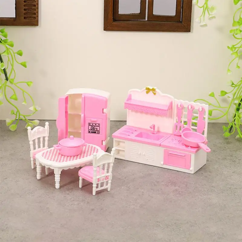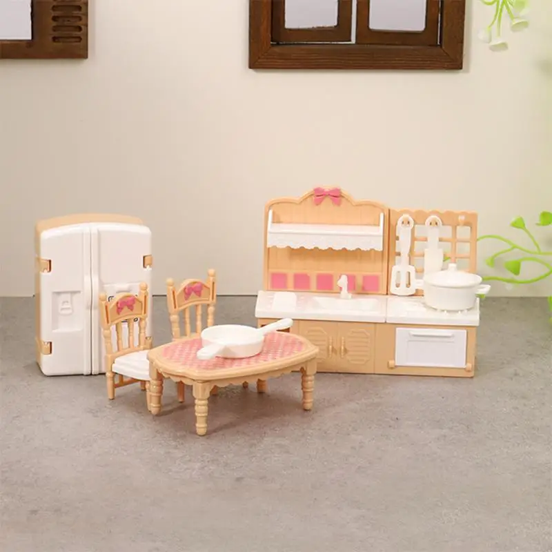 1 Set 1:12 Dollhouse Miniature Double Door Refrigerator Dining Table Furniture Model Decor Toy