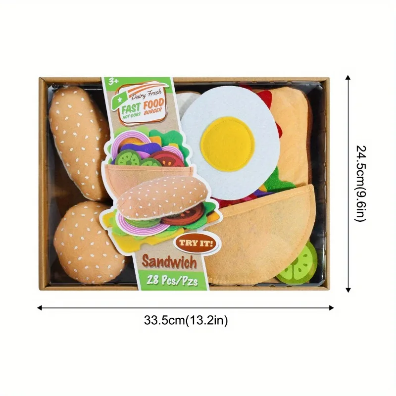 28PCS Felt Combination Kitchen Food Toy Set Soft Hamburger Sandwich for Kids House Pretend Play Kitchen Toys Chirstmas Gifts